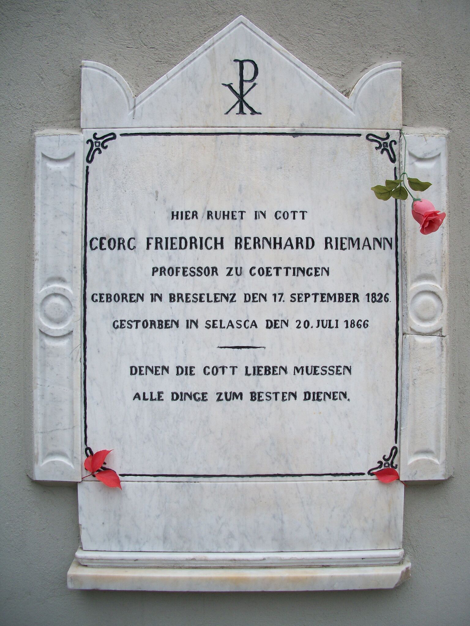 Italiano: la lapide che ricorda Riemann, nel Cimitero di Biganzolo (Verbania) dove fu seppellito nel 1866 (putroppo la tomba si è perduta per rifacimenti nel cimitero stesso) |