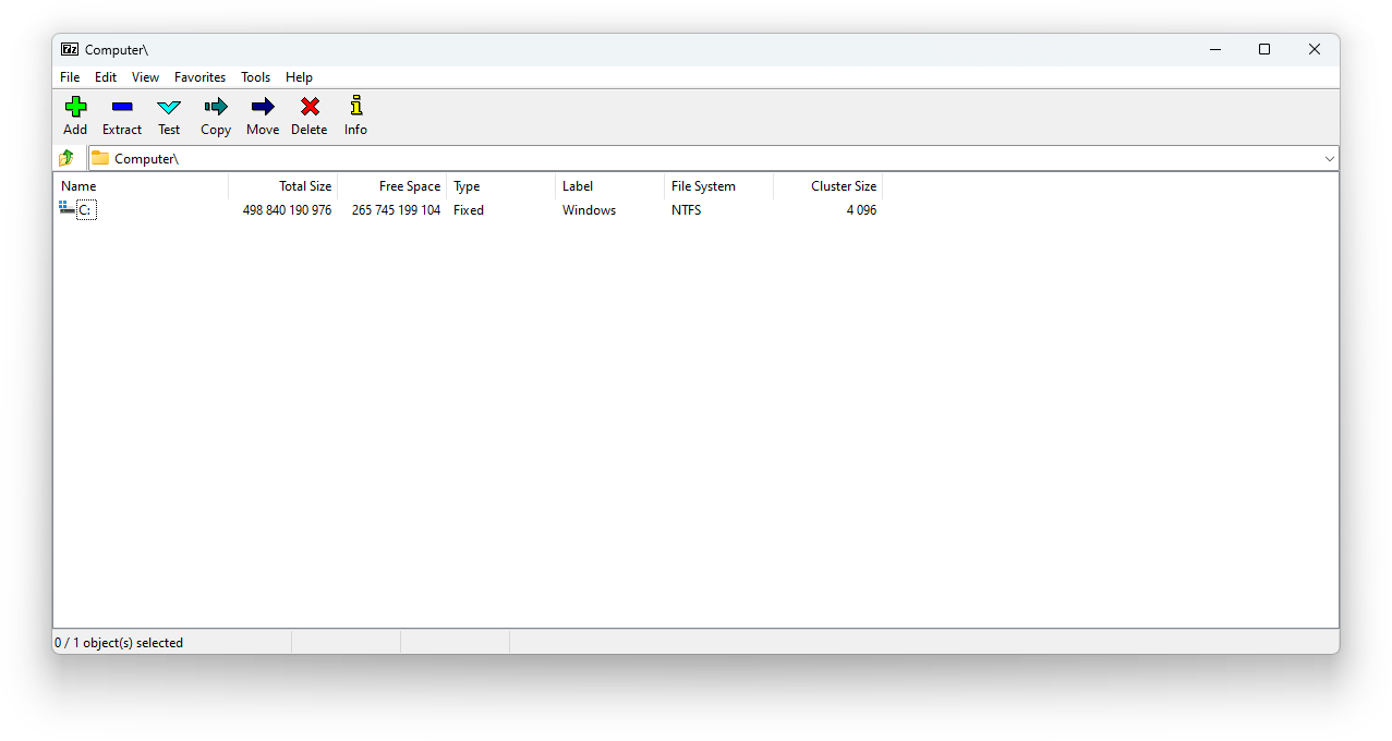 Français : Capture d'écran de 7-Zip sur Windows 11. |