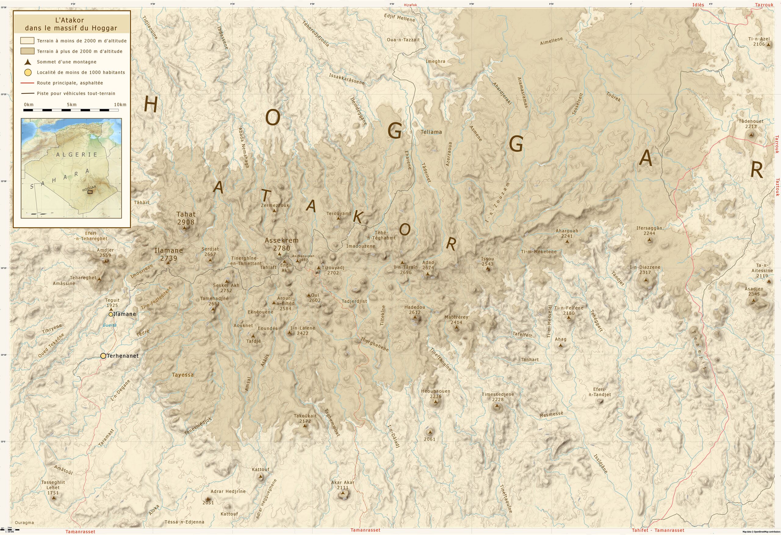 Français : Carte topographique de l'Atakor dans le massif du Hoggar |