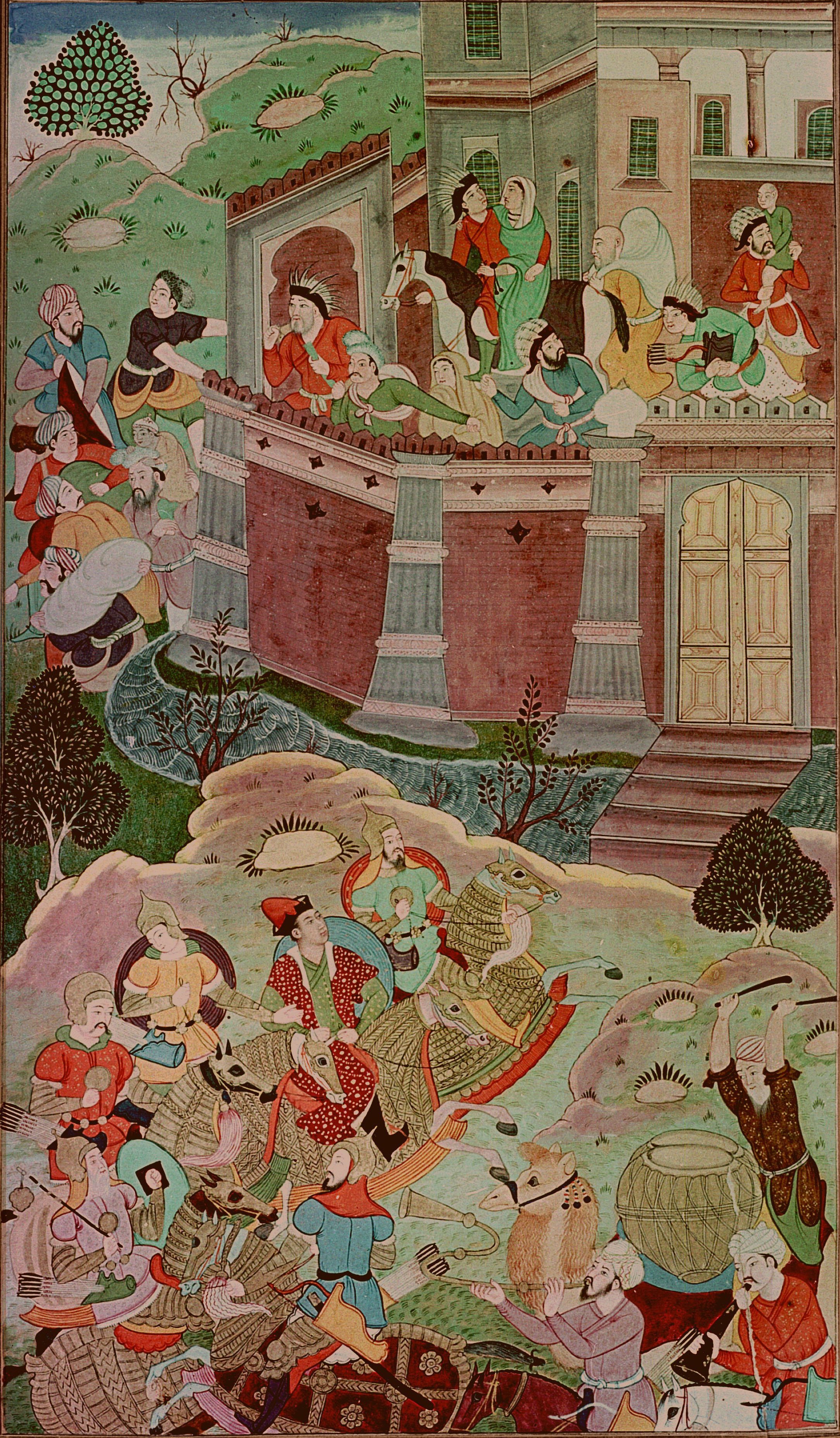 from Rashid al'Din Jami al Tavarikh, drawn 1596 by Miskin Although the event portrayed took place in early 13th Century Mongolia, the people wear Moghul costume of 1596CE |