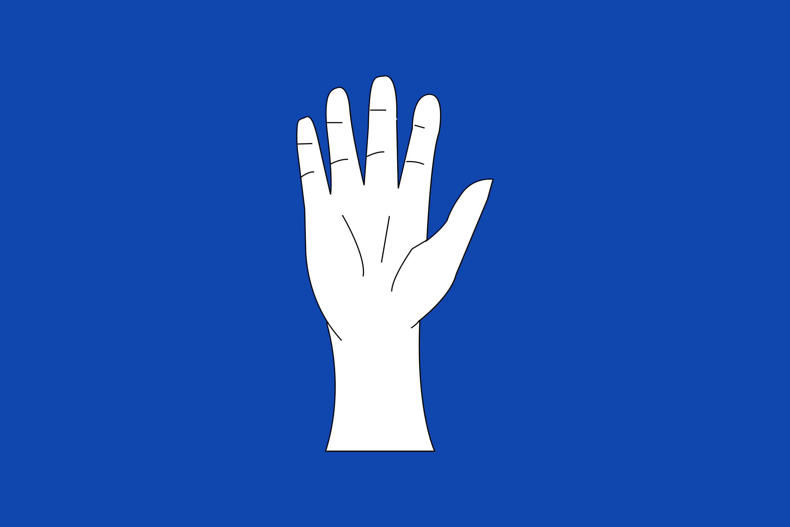 Español: Bandera de Esplugas de Llobregat, Barcelona, España. Bandera apaisada, de proporciones dos de alto por tres de largo, azul con una mano diestra apalmada blanca, de altura 5/7 de la del paño y anchura 1/4 de la del mismo paño, en el centro.[2]