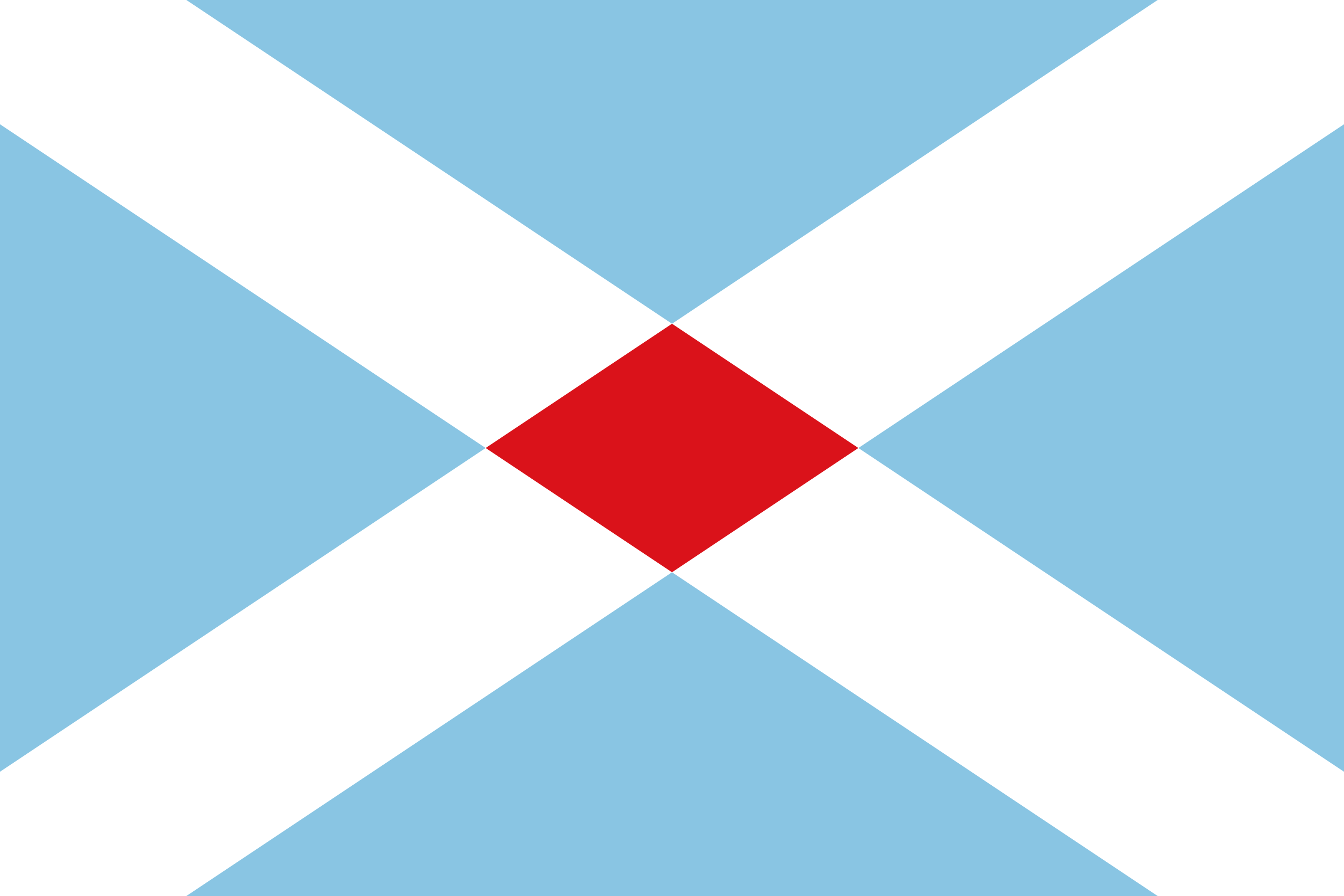 Español: Bandera de Oristá, Barcelona, España. Bandera de proporciones 2:3, azul claro, con un aspa blanca de grueso 1/4 de la altura del paño y con el rombo horizontal formado en el cruce del aspa de color rojo.[2]