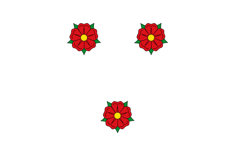 Español: Bandera apaisada, de proporciones dos de alto por tres de largo, blanca, con las tres rosas rojas botonadas de amarillo y barbadas de verde del escudo, dos situadas en la mitad superior de la tela, la primera a 2/7 del asta y la segunda a 2/7 del vuelo, y la tercera centrada en la mitad inferior.[2]