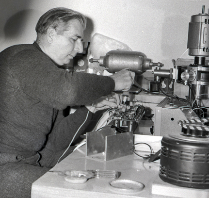 English: Canadian physicist Hugh Le Caine working in the Centre for Electronic Music in Israel, Jerusalem |