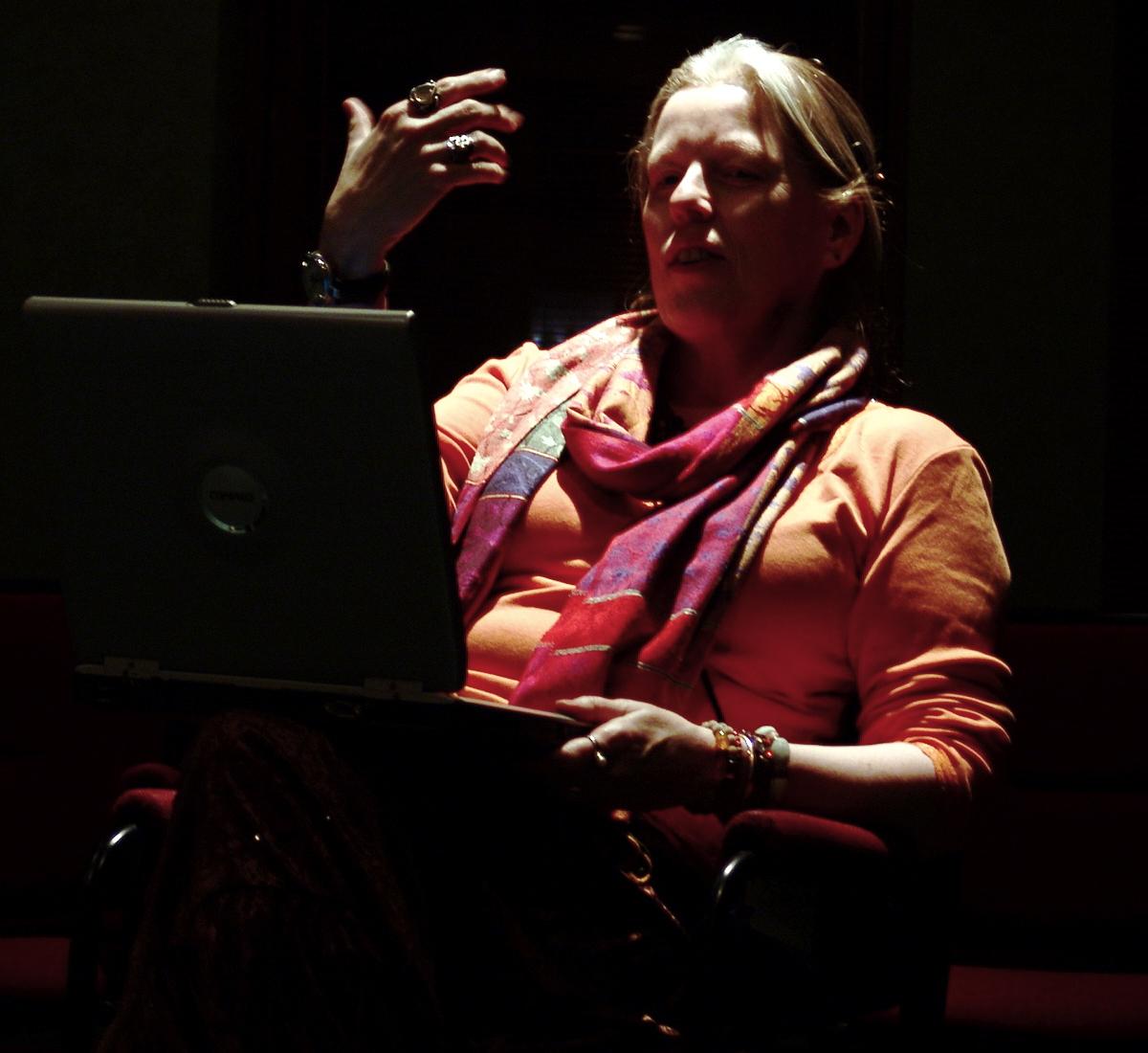 Candas Jane Dorsey giving a talk in Montreal in 2006 |