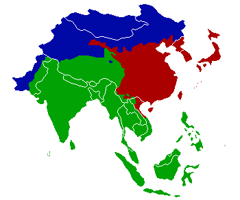 English: Map of the historic distribution of writing system or characters usage in Asia.