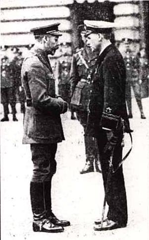 Ronald N. Stuart recieving his Victoria Cross from King George V at Buckingham Palace. This image was published in The Daily Mirror newspaper in 1917, and is now in the public domain. Found here Archive copy at the Internet Archive