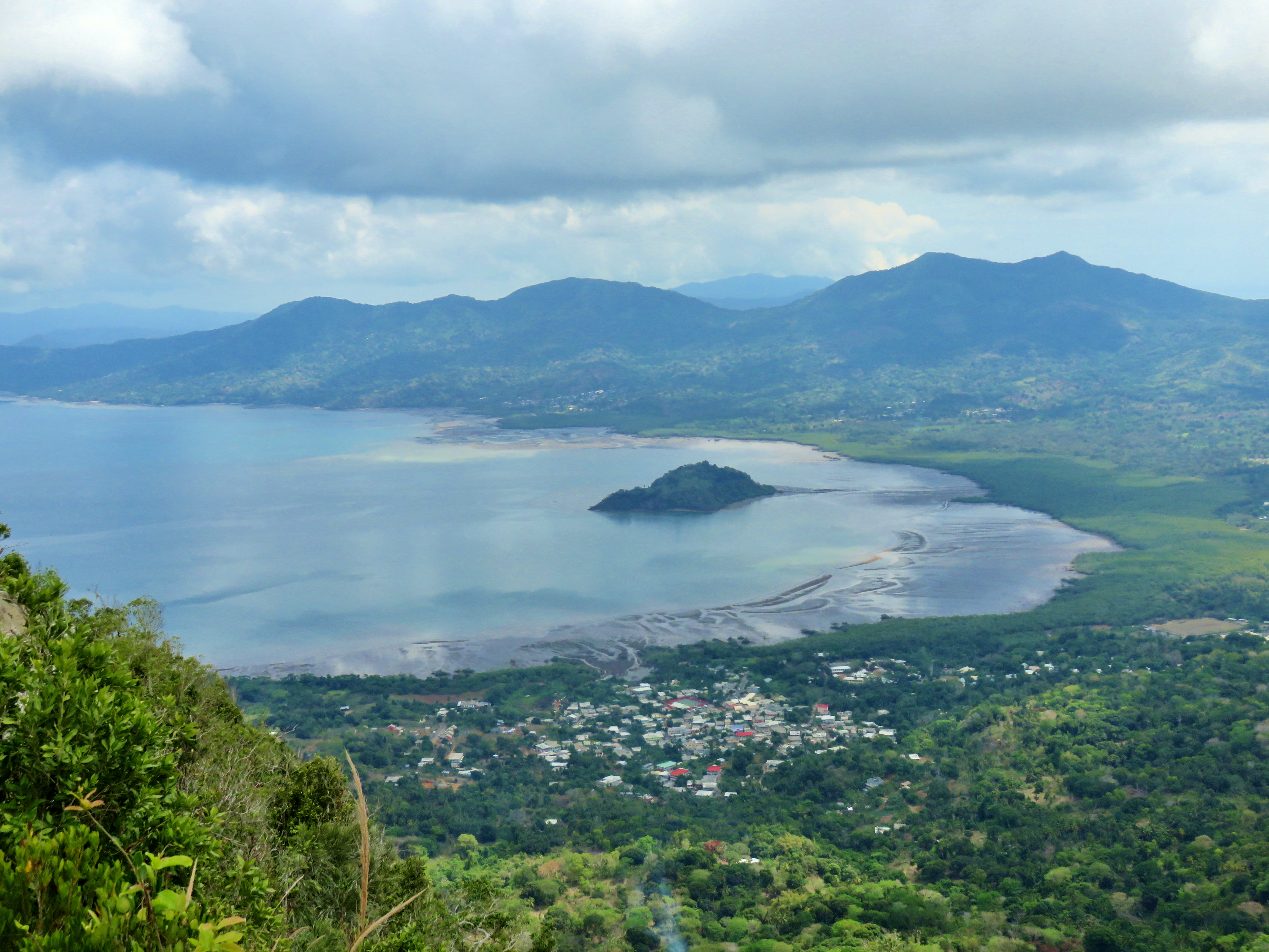 Français : L'îlot Karoni, dans la baie de Bouéni, avec les villages de Tsimkoura et Chirongui, dans le sud-ouest de Mayotte.