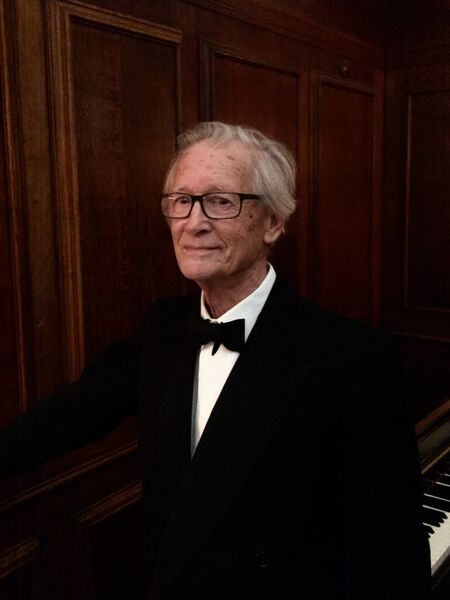English: Dennis Barden at the Pembroke Mathematicians' Dinner 2018, Pembroke College, Cambridge, UK