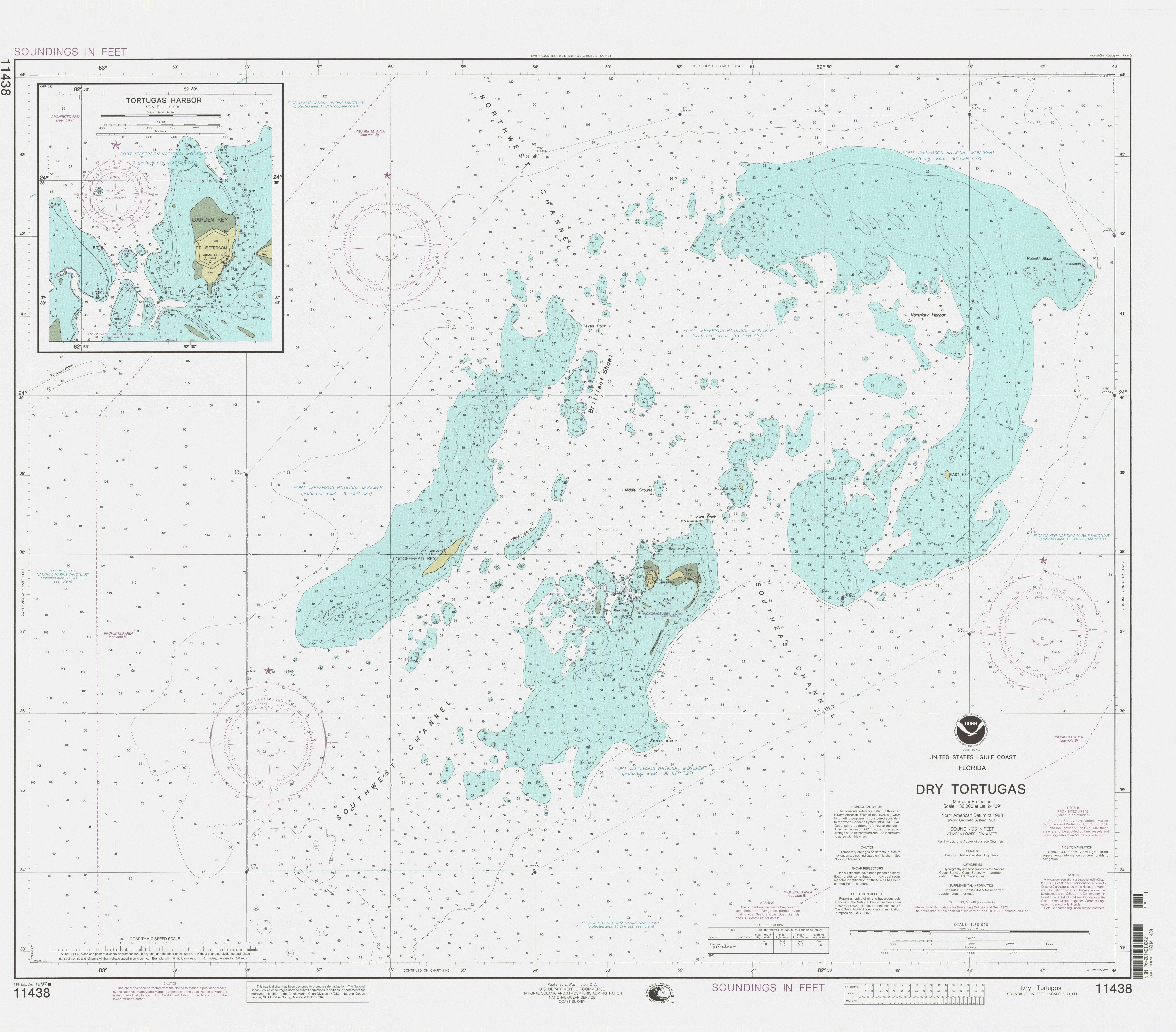 NOAA Nautical Chart "DRY TORTUGAS" 1:30000 from 1997 on page http://historicals.ncd.noaa.gov/historicals/histmap.asp downloadable as *.sid file (a wavelet format viewable by "GeoExpress View by ILS"), converted to jpg (because sadly Wikipedia does not accept this great graphic format) and reduced resolution by half