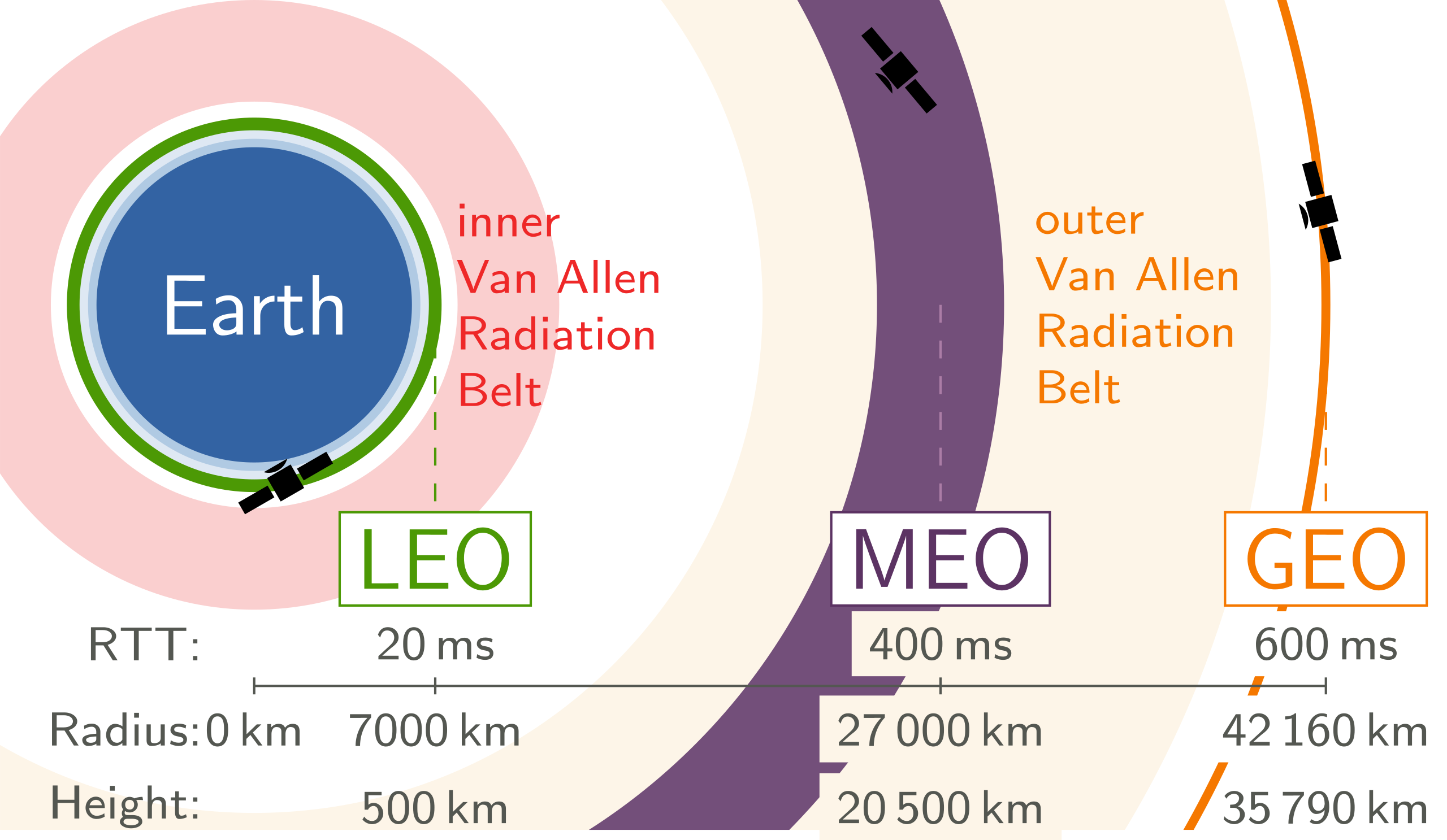 Deutsch: LEO, GEO & MEO and inner & outer Van Allen Radiation Belt