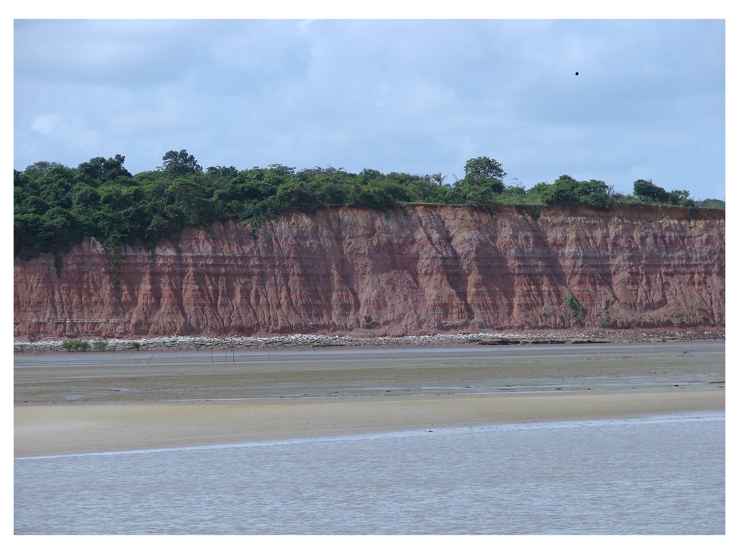 A 20 meters high cliff in São Marcos Bay, Alcântara, Maranhão State, Brazil. Sediments of the Barreiras group, paleogen age. |