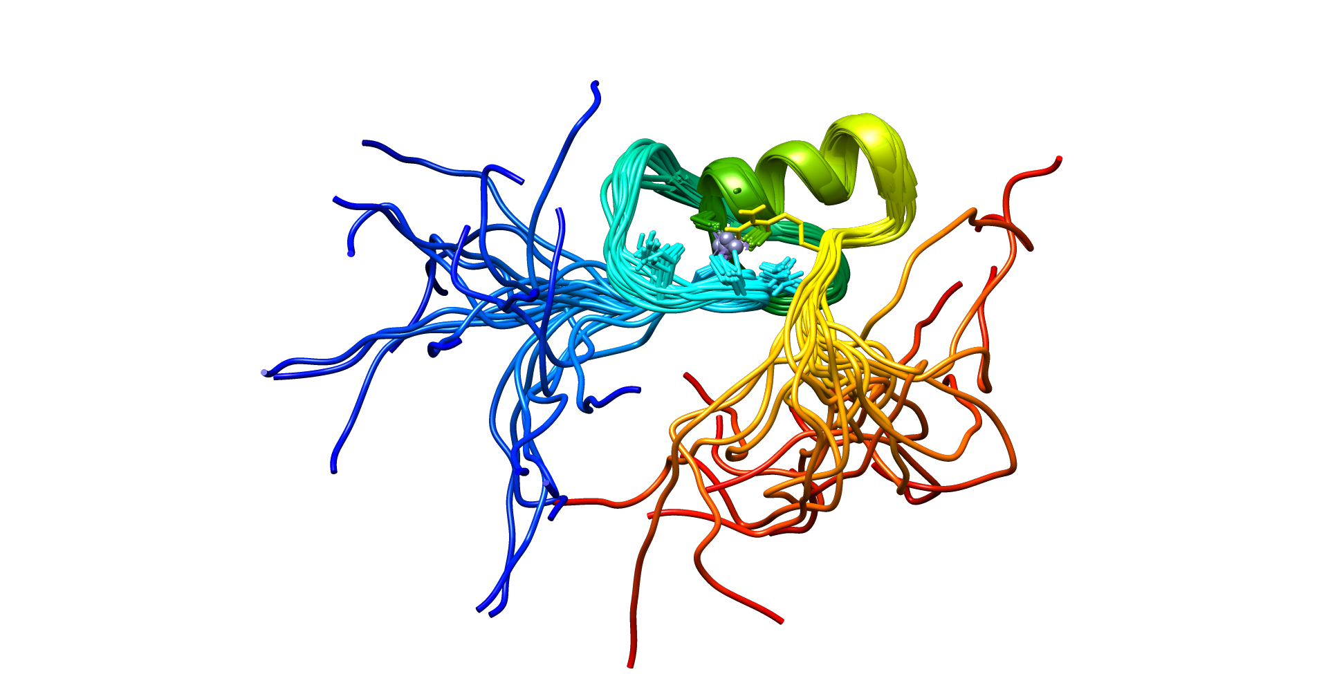 Français : Visualisation de la protéine Cristallisée GATA4 à partir de l'identifiant PDB 2M9W sur le logiciel UCSF Chimera