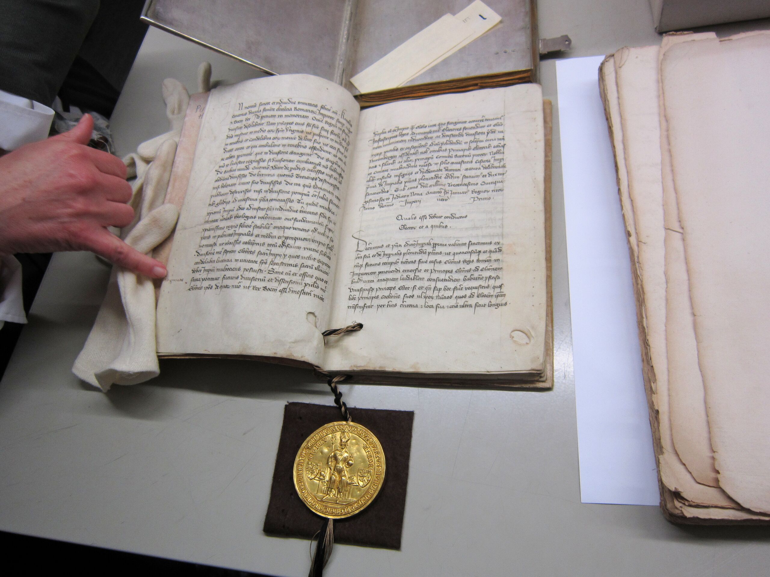 Deutsch: Vollständige Ansicht des Trierer Exemplars der Goldenen Bulle im Hauptstaatsarchiv Stuttgart |