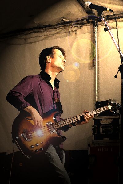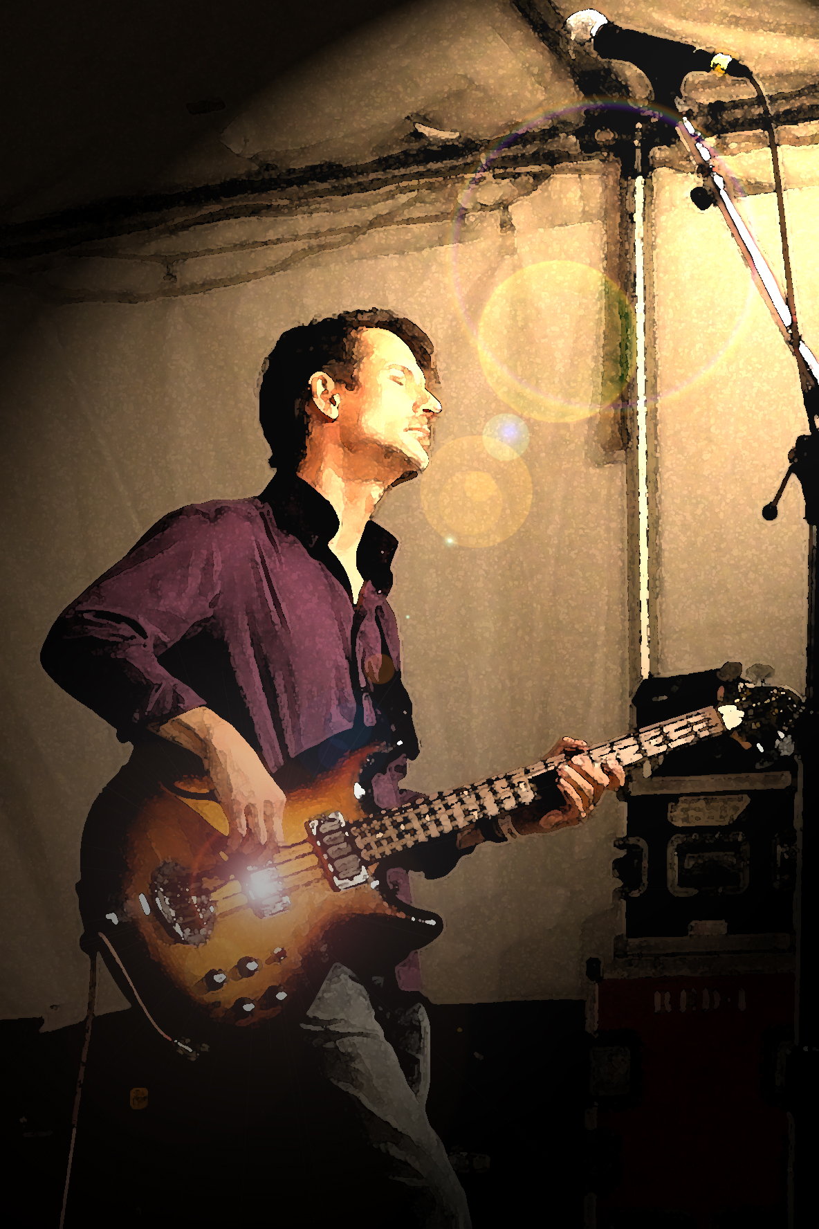 English: Graham Maby playing bass with Marshall Crenshaw at the Falcon Ridge Music Festival.