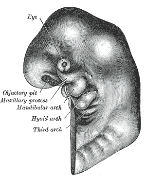 Head end of human embryo, about the end of the fourth week. (From model by Peter.) |