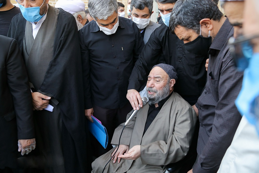 English: Hojjatoleslam Hassan Saane'i attending his brother's funeral, 13 September 2020. |