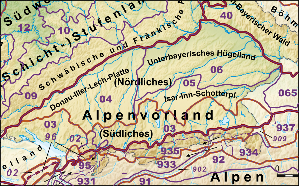 ملف:Haupteinheitengruppen Alpenvorland und Alpen.png
