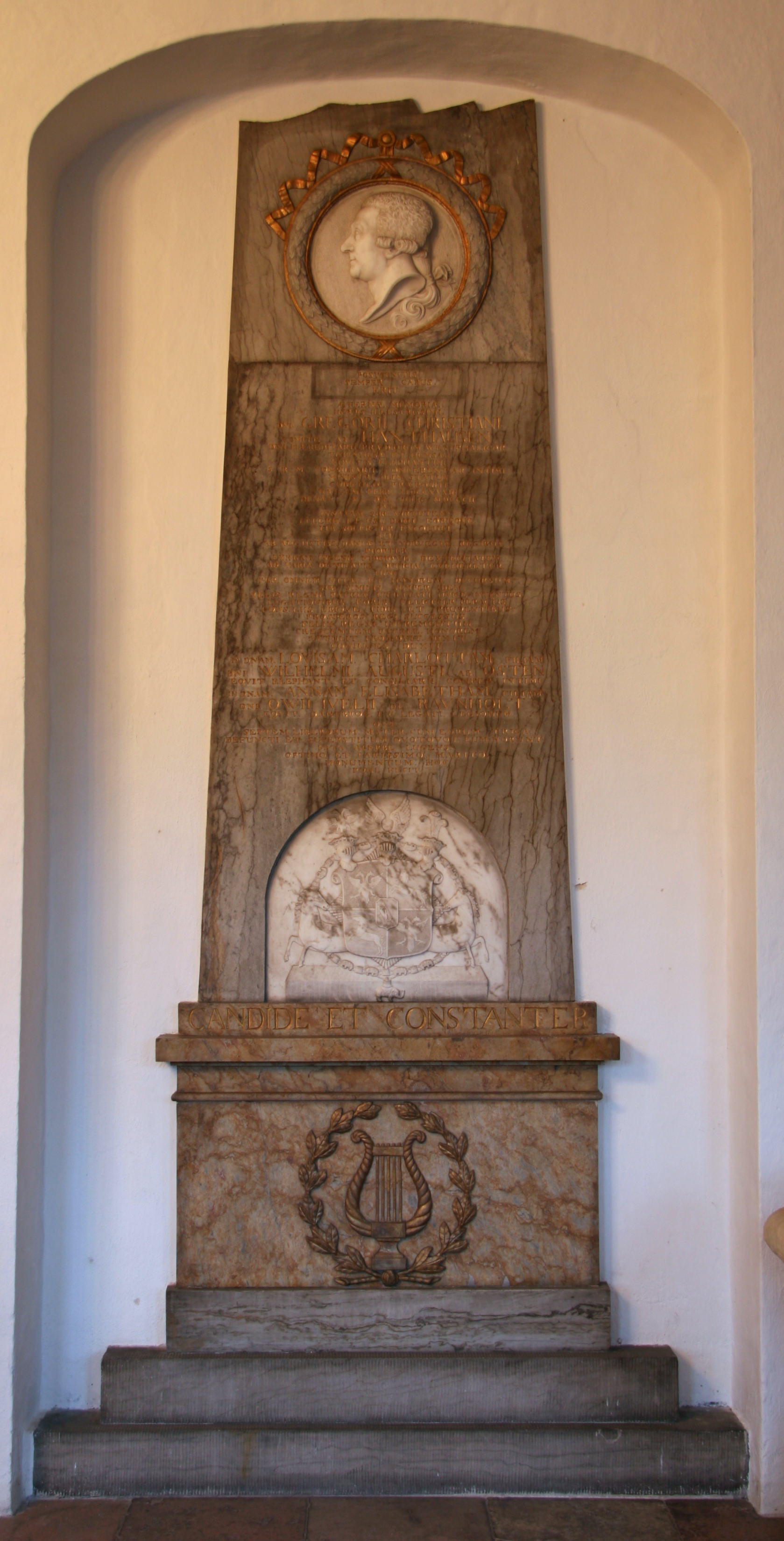 English: Holmens Kirke, Copenhagen, Denmark. Gregorius Christian greve af Haxthausens epitafium i store kapel. 1802.