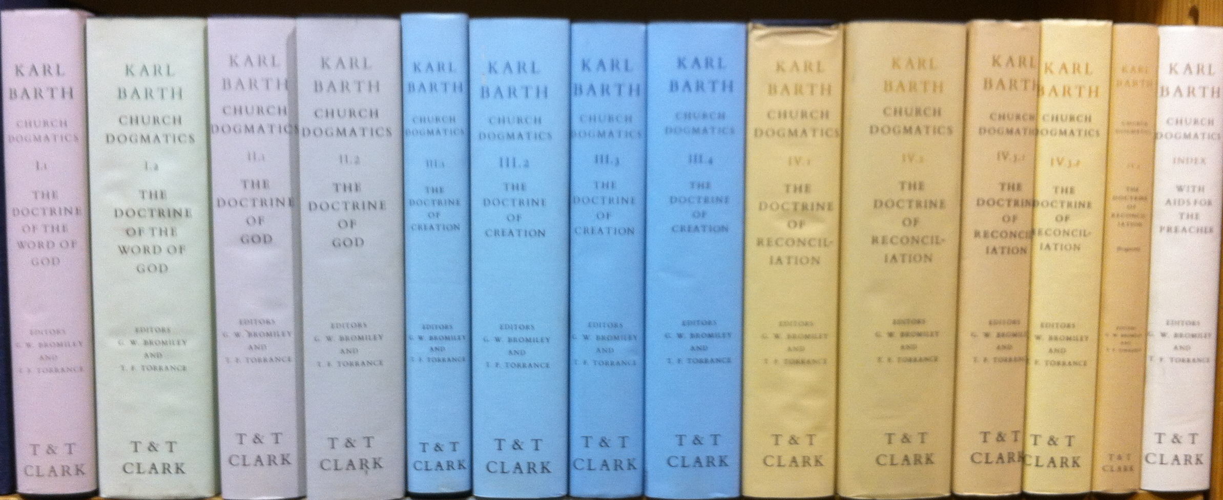English: A set of Barth's Church Dogmatics. Spines only, soft focus, should be unobjectionable as copyright violation. |