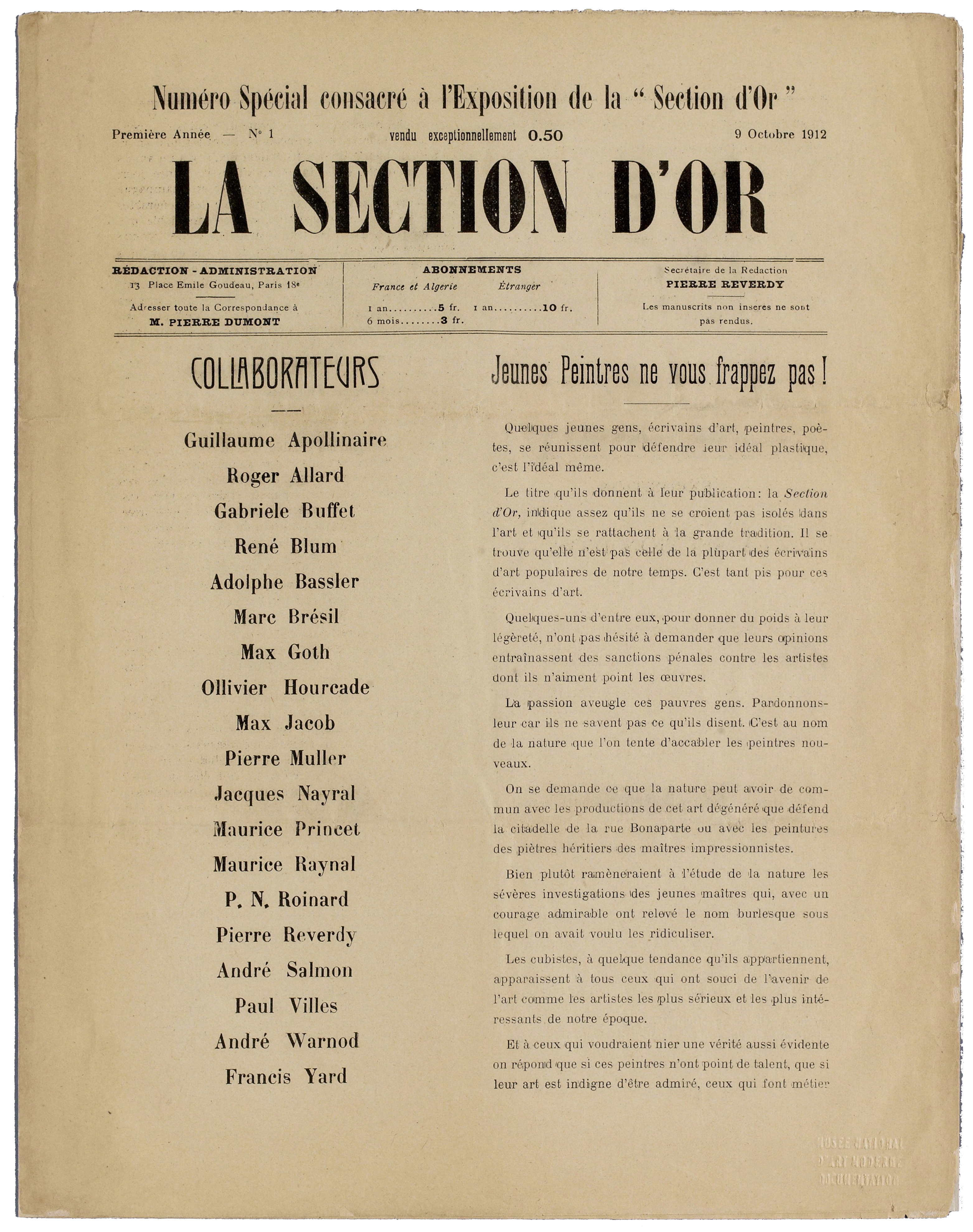 | Source | La Section d’Or: Numéro spécial consacré à l’Exposition de la "Section d’Or", première année, n° 1, 9 octobre 1912, pp. 1-7, Bibliothèque Kandinsky |