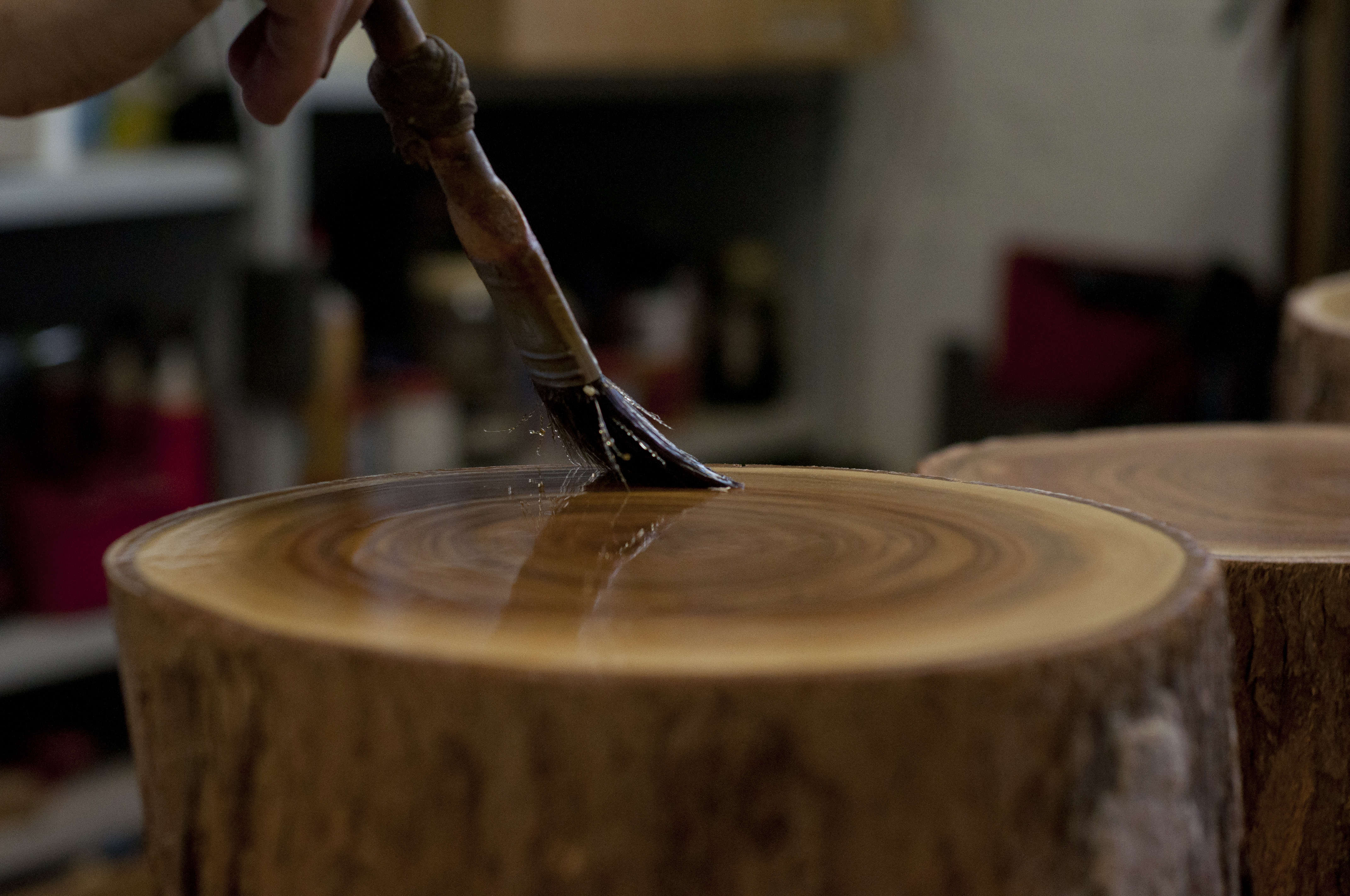 | Description | Lacquering the tops of the tree stumps. |