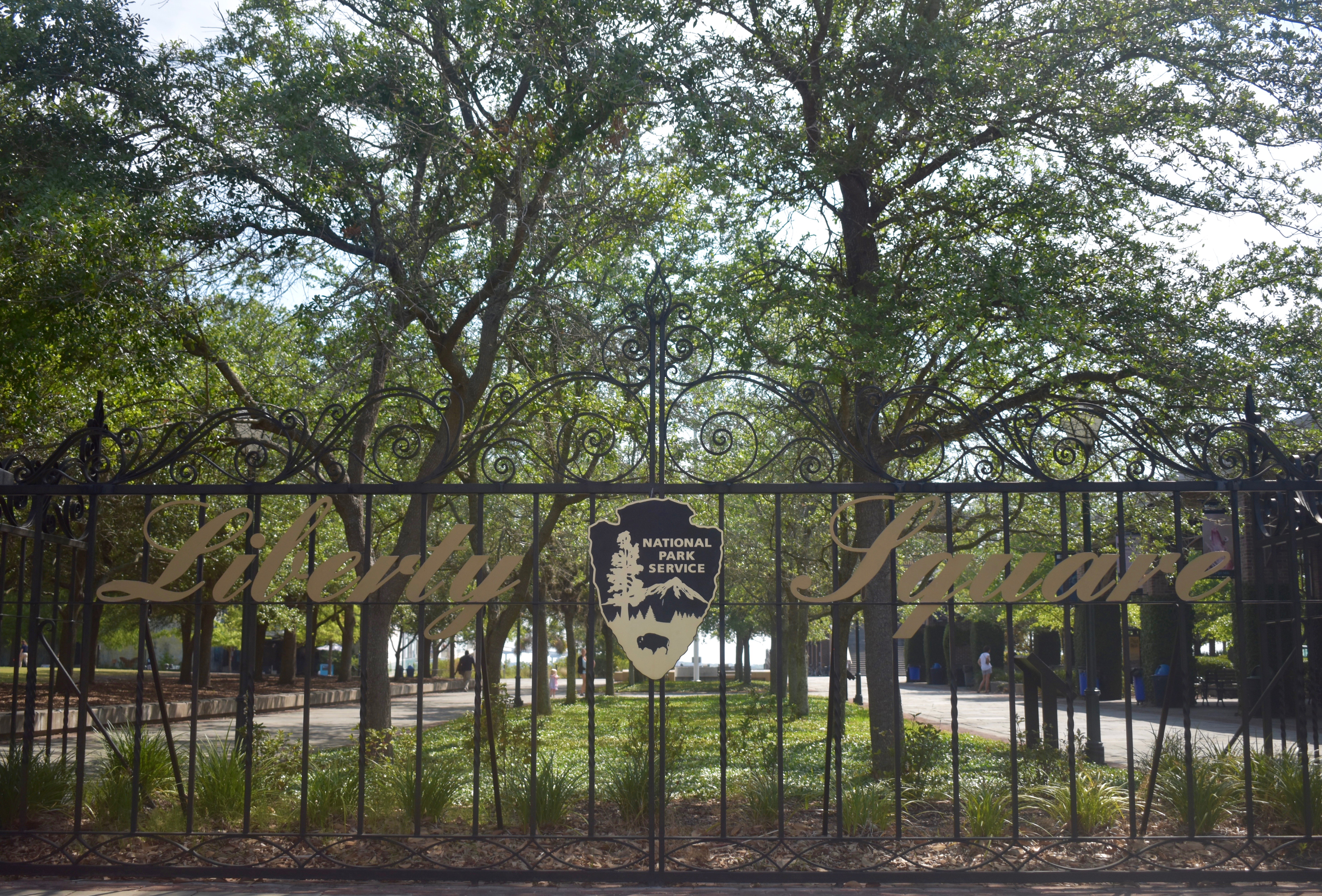 English: The front gate/entrance to Liberty Square designed by Phillip Simmons. |