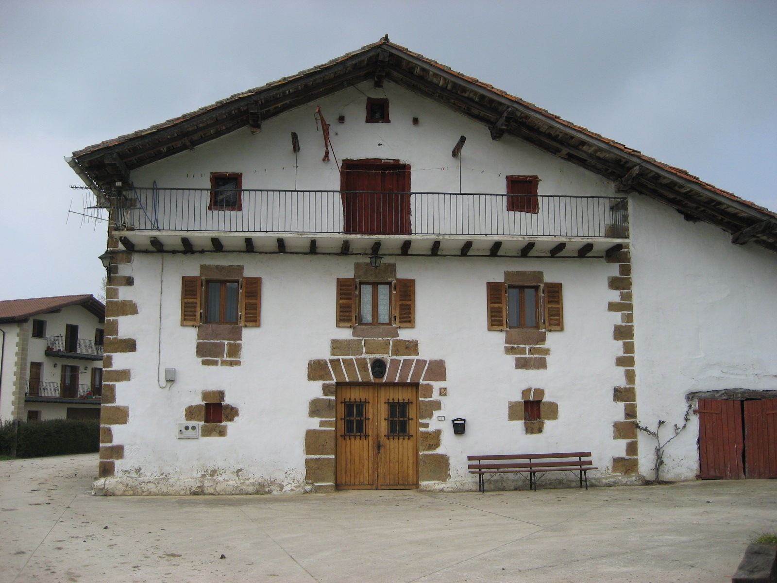 Español: Casa Goikoetxea en Locen (valle de Ulzama), según se indica en el sillar situado sobre la puerta de acceso, la casa se hizo en 1863 |