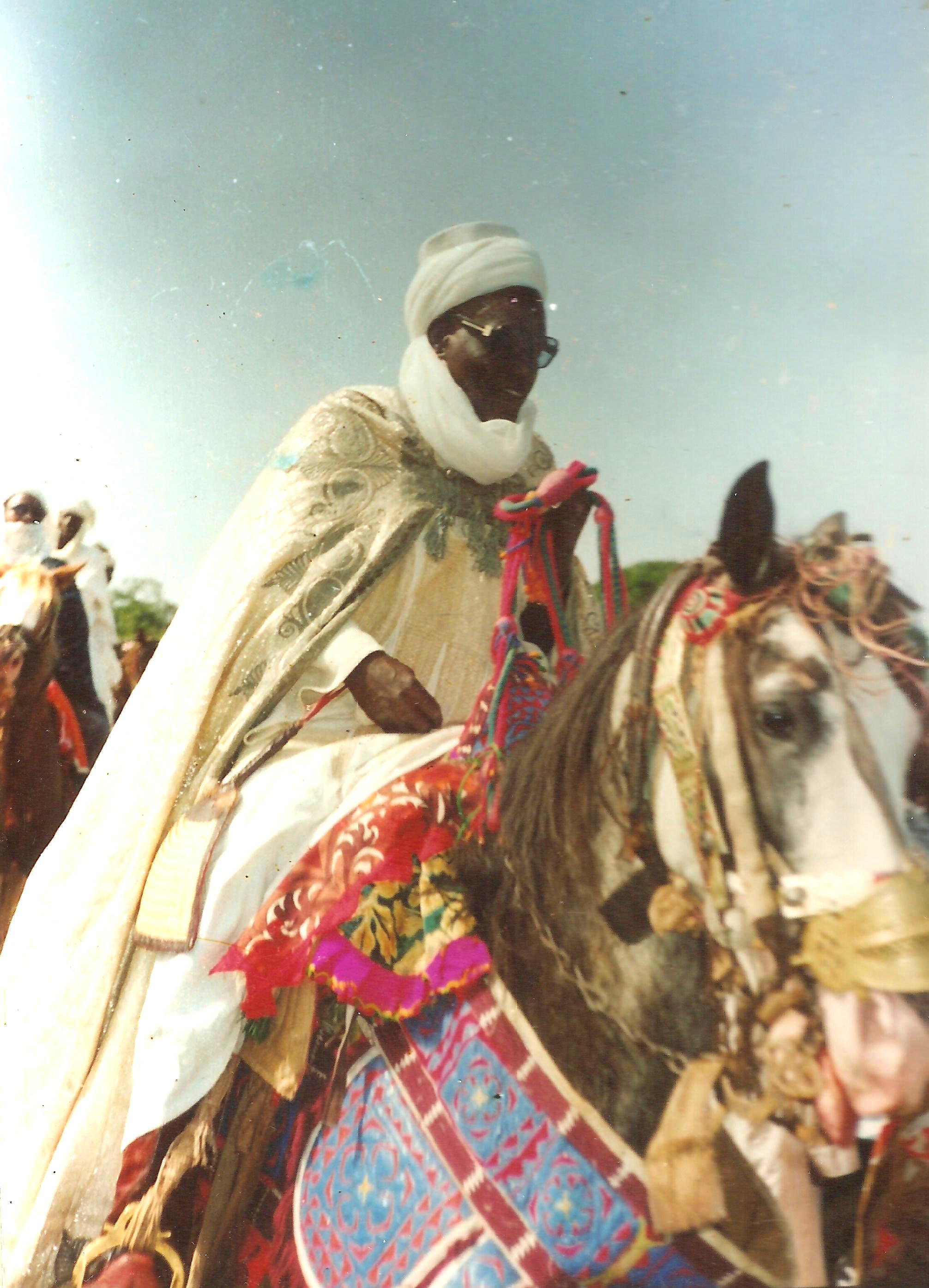 Français : Mama Chabi et les cavaliers de la famille, en pleine démonstration à Parakou. |