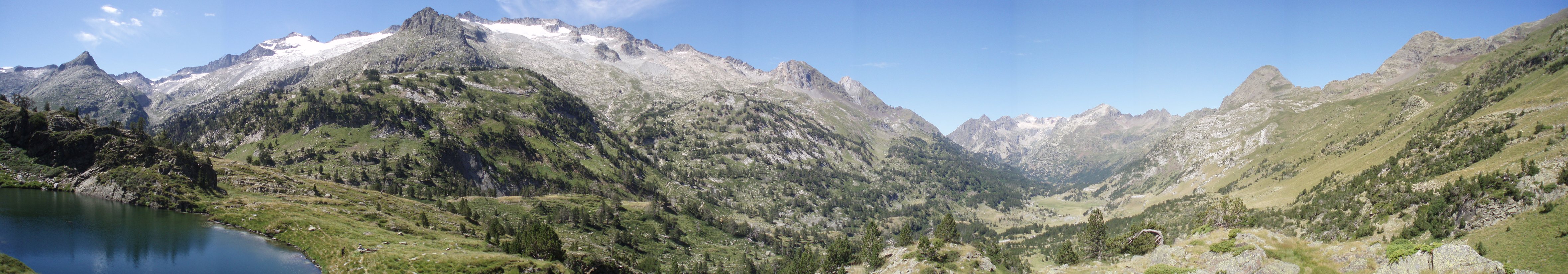 English: Panoramic view of the Maladeta massif and the top of the Benasque valley (Pyrenees, Spain).