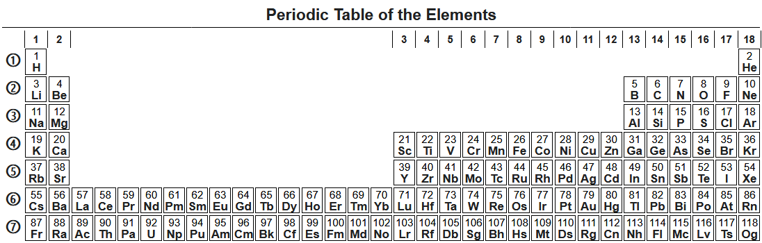 Image from: en:Template:Periodic table/black-and-white/32-column, en:WT:ELEMENTS. |