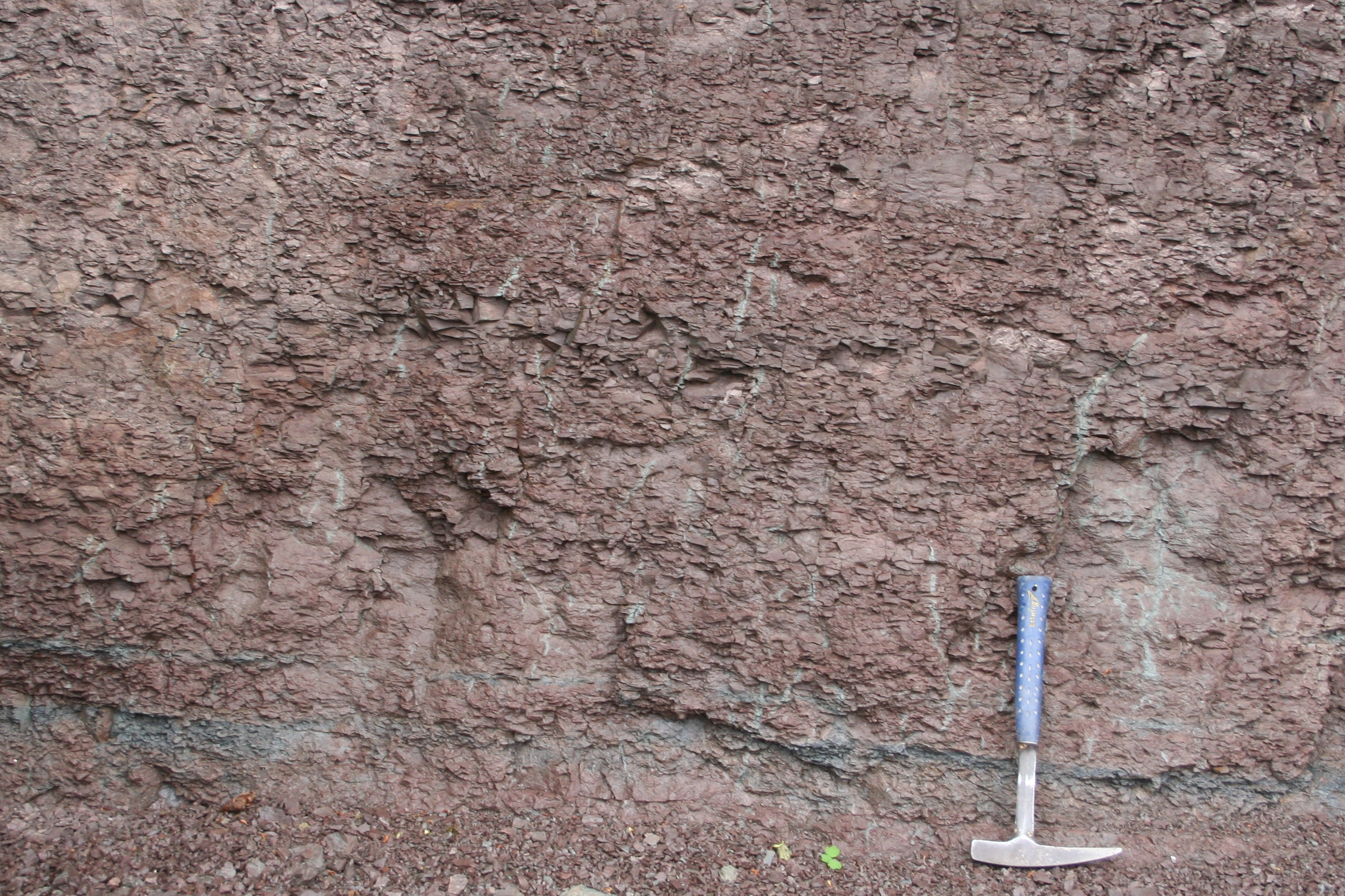 English: Red mudrock in the Ragged Reef Formation ( Pennsylvanian), Cumberland Basin, Nova Scotia |