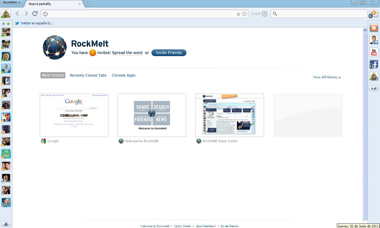 English: Rockmelt Screenshot capture Español: Captura de pantalla de navegador Rockmelt |