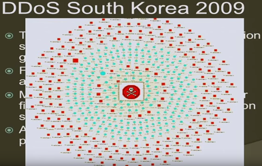 English: Visualization of 2009 cyber warfare attacks against South Korea |