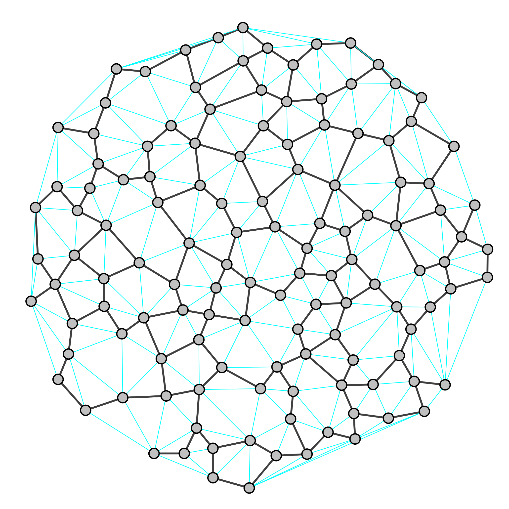 English: Example of Urquhart graph: the cyan edges are deleted from Delaunay triangulation.