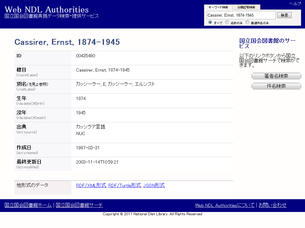 Deutsch: Web NDL Authorities: Screenshot der Webseite der Nationalen Parlamentsbibliothek Japans (Browser: Chrome, Vers. 19.0). |