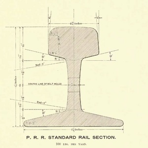 - 1825: 15 أقدام (4.6 m) سكك حديد ستوكستون ودارلينجتون 5.6 lb/yd (2.78 kg/m)[بحاجة لمصدر]