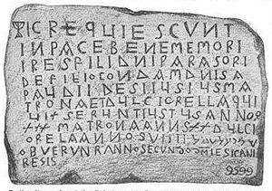 - ^ Clauss, Manfred; Slaby, Wolfgang A.; Kolb, Anne; Woitas, Barbara. "EDCS-28300234". Epigraphik-Datenbank Clauss/Slaby (in الألمانية). Catholic University of Eichstätt-Ingolstadt. OCLC 435767433. EDCS-28300234. Retrieved سبتمبر 26, 2020.