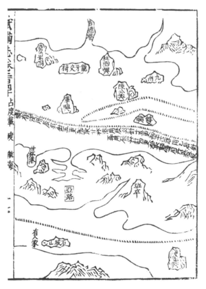 Mao Kun map showing part of the island of Sumatra and the Aru Kingdom at its bottom (亞路)