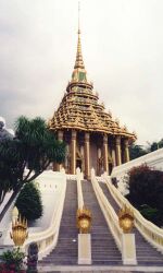 Songtham temporarily restored stability to Ayutthaya and focused inward on religious construction projects, most notably a great temple at Wat Phra Phutthabat. In the sphere of foreign policy, Songtham lost suzerainty of Lan Na, Cambodia and Tavoy,[80] expelled the Portuguese,[83] and expanded Siam's foreign trade ties to include both the English East India Company and French East India Company, along with new merchant colonies in Siam representing communities from all across Asia.[81] Additionally, Songtham maintained the service of Yamada Nagamasa, whose Japanese mercenaries were at this point serving as the king's own royal guard.[80]