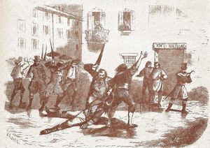 وضعف المسرح الإيطالي لأن الإيطاليين وجدوا أنه من الطبيعي تماماً أن يحولوا الحديث العادي إلى أغان، والدراما إلى أوبرا، وكانت الجماهير تميل كثيرا إلى المسرحيات البسيطة ذات الطابع الكوميدي، أما الأفراد الأكثر نضجا فكانوا يؤثرون المسرحيات من نوع ما يكتبه فيتوريو ألفيري Vittorio Alfieri (9471 - 3081) التي أعلن فيها كرهه للطغيان وتطلعه لتحرير إيطاليا من الحكم الأجنبي، فكل مسرحياته تقريبا سبقت الثورة الفرنسية(52) لكن مبحثه الانفعالي المفعم حماسا لم ينشر إلاسنة 7871 في بادن Baden مع أنه كتبه في سنة 7771، ولم ينشر في إيطاليا إلا سنة 0081 وأصبح بعد نشره من كلاسيات الفلسفة الإيطالية وفن الكتابة بالإيطالية• وأخيرا وجدناه في عمله الذي يحمل عنوان Misogallo (9971) الذي كتبه في أواخر حياته المضطربة - يدعو الشعب الإيطالي للنهوض والإطاحة بالحكم الأجنبي كما دعاه للوحدة• وهنا وجد مازيني Mazzini وگاريبالدي صوتا واضحا يعبر عن أفكارهما•