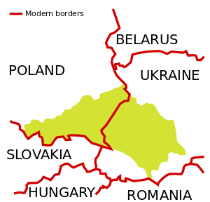 Modern Polish Voivodeships (Silesian, Lesser Poland and Subcarpathian) and Ukrainian Oblasts (Lviv, Ternopil and Ivano-Frankivsk) which contain parts of the former kingdom.