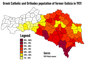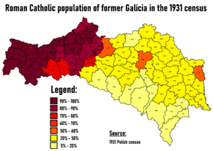 27. ^ Zamorski, Krzysztof (1989). Informator statystyczny do dziejów społeczno-gospodarczych Galicji. Ludność Galicji w latach 1857-1910 (in Polish). Kraków-Warszawa: Zakład Wydawnictw Statystycznych. pp. Tabela 21, Tabela 35. ISBN 83-233-0350-9.{{cite book}}: CS1 maint: unrecognized language (link)