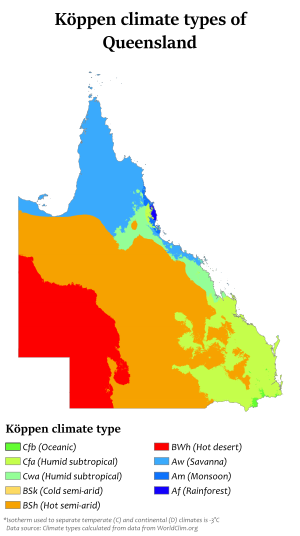 There are five predominant climatic zones in Queensland,[27] based on temperature and humidity: