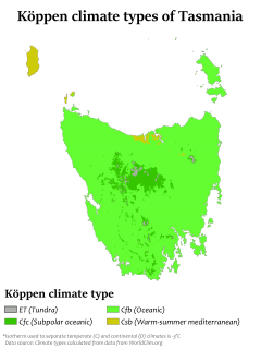 Köppen-Geiger climate types of Tasmania