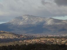 Light snow on Mount Tennent, which features dry sclerophyll woodlands.
