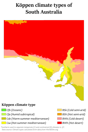 خريطة كوپن لأستراليا الجنوبية