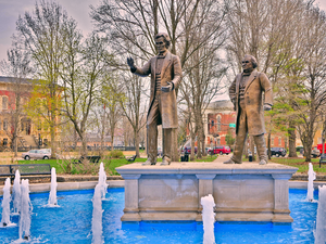 The debate locations in Illinois feature plaques and statuary of Douglas and Lincoln.[21]