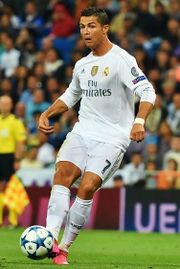 كريستيانو رونالدو دوس سانتوس أفييرو[40](بالبرتغالية: Cristiano Ronaldo dos Santos Aveiro)، (مواليد 5 فبراير 1985)، المعروف بـ كريستيانو رونالدو. هو لاعب كرة قدم برتغالي يلعب في مركز الجناح الأيسر أو كمهاجم بنادي يوفنتوس الايطالي الذي يشارك في الدوري الايطالي وهو حالياً قائد منتخب البرتغال لكرة القدم، وهو الهداف التاريخي لكل من منتخب بلاده[41] وناديه السابق ريال مدريد.[42] يُعتبر رونالدو حسب الكثيرين وبناءً على الكثير من الإستفتاءات أحد أفضل اللاعبين في جيله، بل وحتى في تاريخ لعبة كرة القدم، [13][14][43][44] وقد اختاره الإتحاد البرتغالي لكرة القدم أفضل لاعب في تاريخ البرتغال مطلع عام 2015،[45] وهو أكثر من سجل أهدافاً منذ بداية القرن الحادي والعشرين.[46]