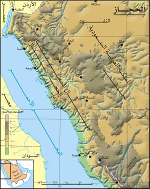 - ^ محمد الحمادي. "الحجاز (الجغرافية في-)". الموسوعة العربية.